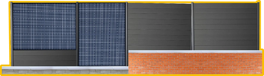 Clôture modulaire avec profil spécial pour intégrer facilement des panneaux photovoltaïques en mode portrait ou paysage, compatible avec les poteaux Neva. Prête à poser et Plug & Play, elle combine sécurité, design et production d’énergie solaire renouvelable.